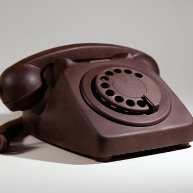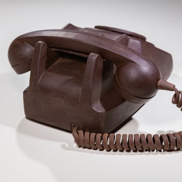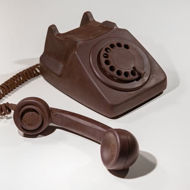 Evoking memories of when we knew people's phone numbers and sat tethered in the hallway to make a call; this is a chocolate replica of the iconic 70's GPO no. 746 Rotary. [swooosh, click, click, click]