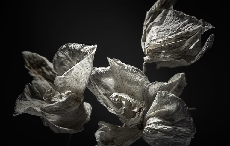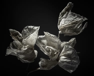 'Reverie for a Bloom' captures the quiet, fading beauty of flowers in their final, most fragile forms. Each photograph lingers on the overlooked - where wilt becomes wonder, and stillness holds its own kind of bloom. It is a meditation on time, memory, and the grace found in letting go.